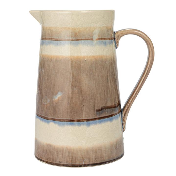 Esta jarra presenta un diseño acogedor y rústico, con un acabado de esmaltado craquelado reactivo que crea una apariencia texturizada y variada que la hace única y especial.